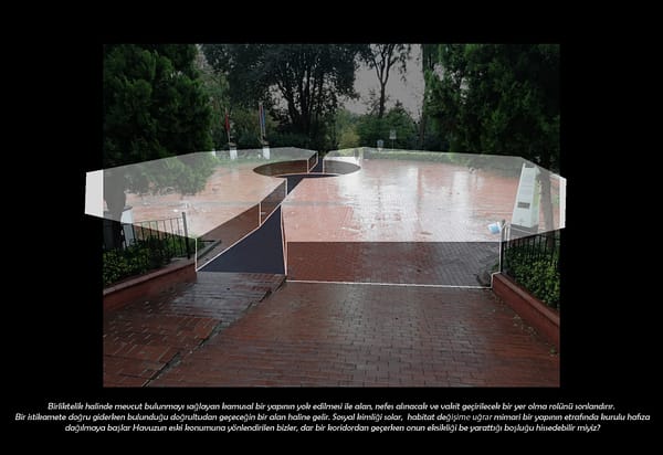 Bireysel çalışmalar öncesi gerçekleşen son çalışmada, iki kişilik gruplar oluşturuldu. Katılımcılarımız, grup arkadaşının yaşadığı şehirde rastladığı ve tariflediği bir boşluğa müdahaleler gerçekleştirdi.