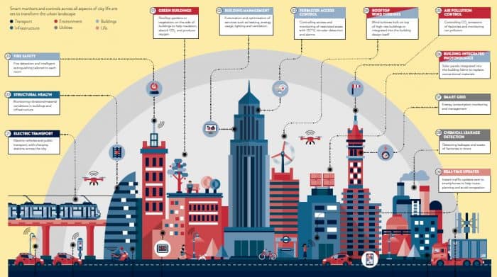Nüfustaki büyük artış ve Büyük Veri gibi gelişmelerin bir sonucu olarak şehirler birbirine eskisinden daha bağımlı hale geldi. Bugünlerde metropollerde çeşitli şeyleri ve durumları görüntüleyen milyonlarca sensör bulunuyor. Yakın gelecekte bu sensörler trafik ışıklarından, çöp bidonlarına kadar her şeyi algılayıncaya dek çoğaltılarak yol durumu bilgileri ya da enerji tüketimleri takip edilecek.