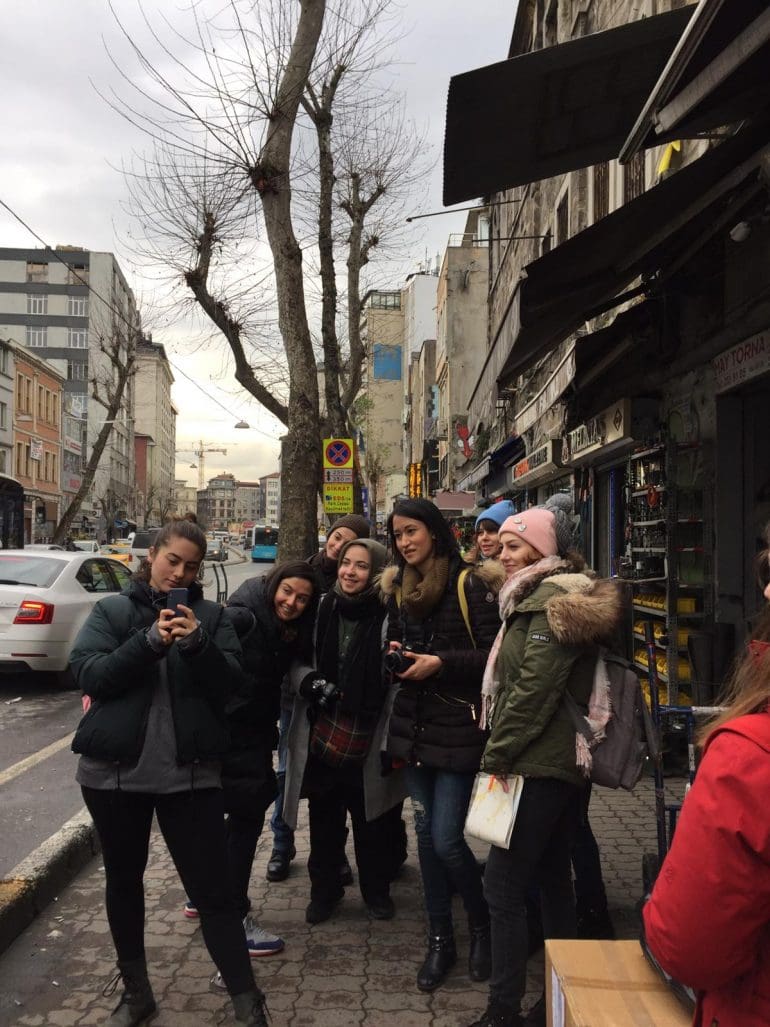 “Başlangıç noktası olarak belirlediğimiz Karaköy Tünel’de buluşarak yola çıktık. Ardından Karaköy Balık Pazarı’nın önünden Fermeneciler Caddesi boyunca sahil kıyısından yürüyerek Perşembe Pazarı’nın ara sokaklarında dolaştık. Bu rota boyunca küçük ölçekteki üretim-tüketim yapılarını deneyimledik gözlemledik. Üretimi yerinde deneyimleyerek, ilk ağızdan dinleme ve iletişim kurabilme fırsatını yakaladık. Devamında, vapurla seyahat ederken panoramik açıyla gözlemlediğimiz Haliç Tersanesi ile Perşembe Pazarı’nın birlikte nasıl çalıştığı üzerine konuşmalar yaptık. Üretim-tüketim ağındaki mega yapı ve onu besleyen, yeri geldiğinde ondan beslenen, bir endüstriyel ticari yapı topluluğu arasındaki bağın süreçsel gelişimini ve geleceğe yönelik olası senaryoları sorguladık.”