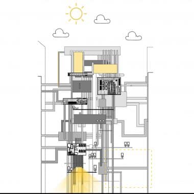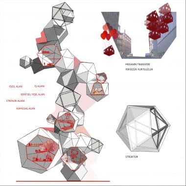 Yeni teknolojiler sayesinde yapım sistemlerinin incelendiği ve içe dönük rijit bir sistem yerine nefes alan bir organizma gibi hareket eden, bu hareketin kent tarafından algılanabildiği bir sistem kurgulanmıştır. Değişen ihtiyaçlar doğrultusunda deformasyona izin veren yapı dönüşümlere zemin hazırlayabilir niteliktedir.
