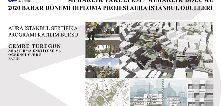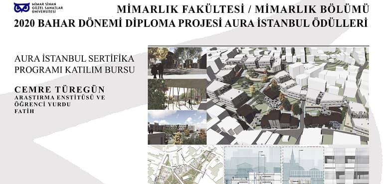 AURA İstanbul Mimarlık ve Şehircilik Araştırmaları Akademisi, MSGSÜ Mimarlık Bölümü Lisans Programında diploma projesi hazırlayan öğrencileri başarıya teşvik etmek ve mesleğe geçiş döneminde öğrencilerin eğitimine katkıda bulunmak amacıyla, 2020 Bahar Dönemi itibari ile iki öğrenciye “Sertifika Programı Katılım Bursu” sunmaya devam ediyor.