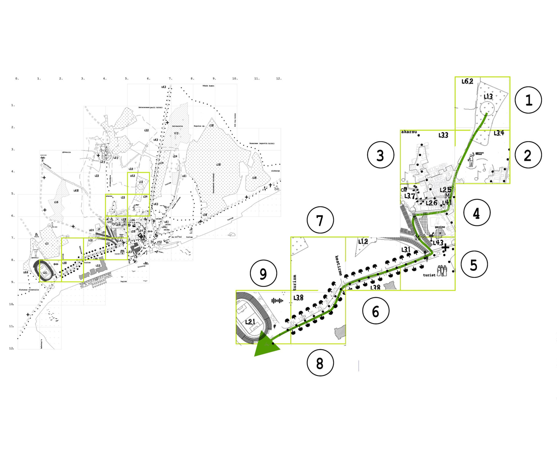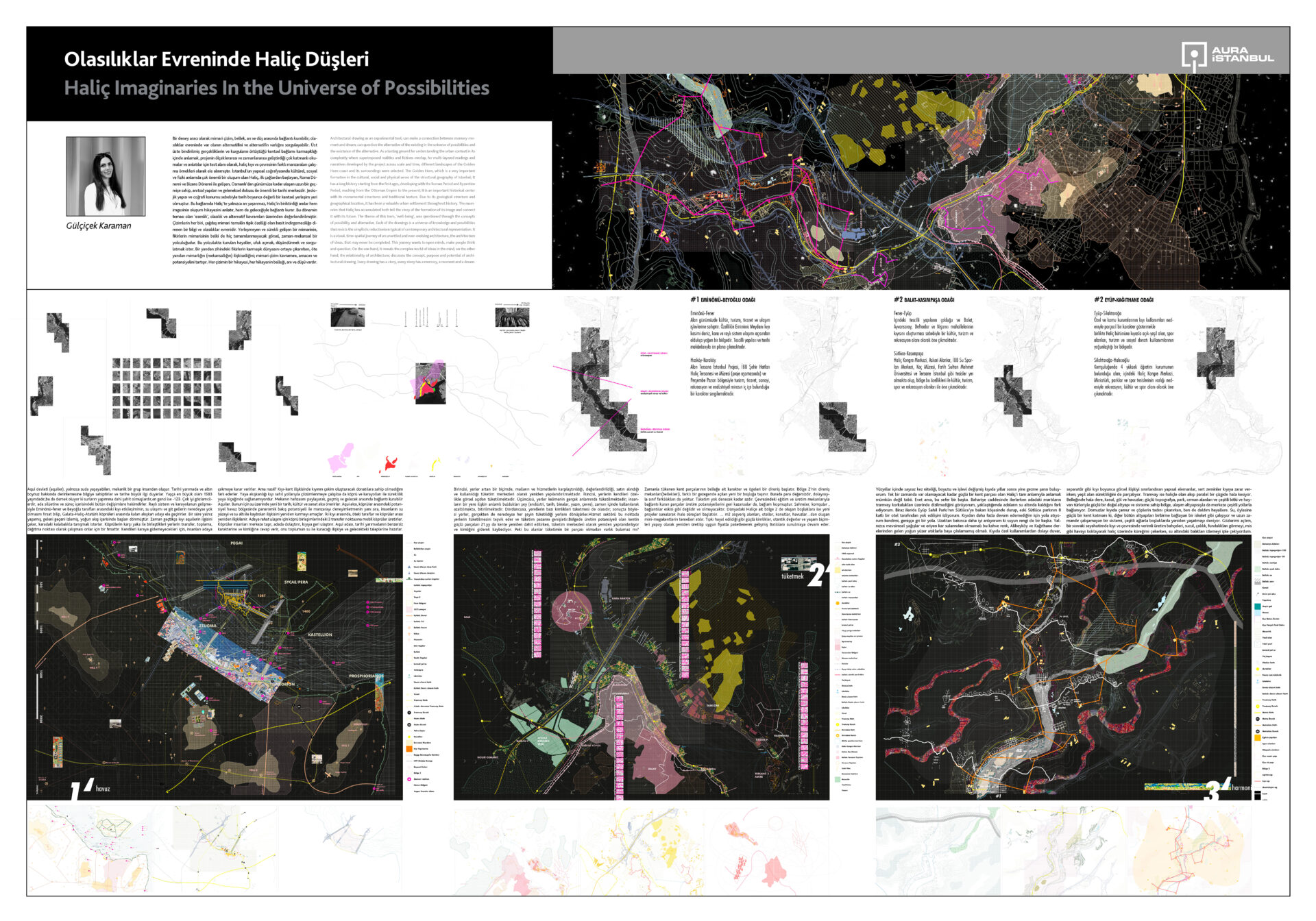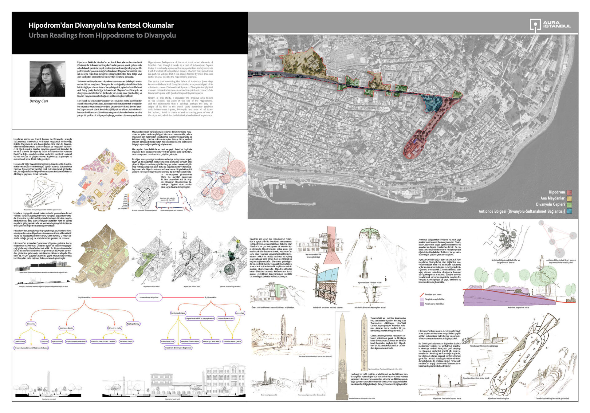 Adı ortada, kendi saklı kalmış Hipodrom Sultanahmet’te belirdi. Beyazıt Meydanı’nda konuşulmayanlar konuşuldu, meydan yeniden hayat bulur mu? Kadıköy -Üsküdar kıyıdan nasıl kavuşur? Kentin en değerli kıyısı, kıyı kalarak nasıl var olur? Fikirtepe’nin tepeliğini yok eden rantın yüksekliğine onun çukurları ile cevap geldi. Kentin farklı merkezleri kimlere ait/aitmiş? İzleri takip ettiler. Balat’ı, Hasköy’ü, Piyalepaşa’yı, Karaköy’ü, Haliç’i, Kadıköy’ü arşınladılar. Uzun Çarşı’nın iki denizi birleştirmesiyle, bu sınırla şekillenen yapı dokular dillendi.