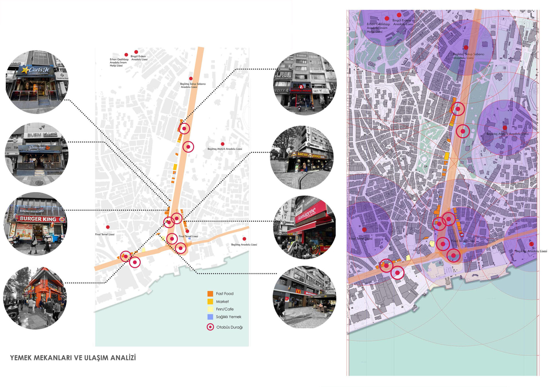 Proje, kentsel tasarım ve mimarinin yeme alışkanlıklarımız üzerindeki etkisini ortaya koymayı hedefler. Beşiktaş‘ta lise çağındaki gençlerin yemek tercihlerini nasıl yaptıklarını, nereleri tercih ettiklerini ve bu tercihlerinde etkili olan faktörleri sorgular.