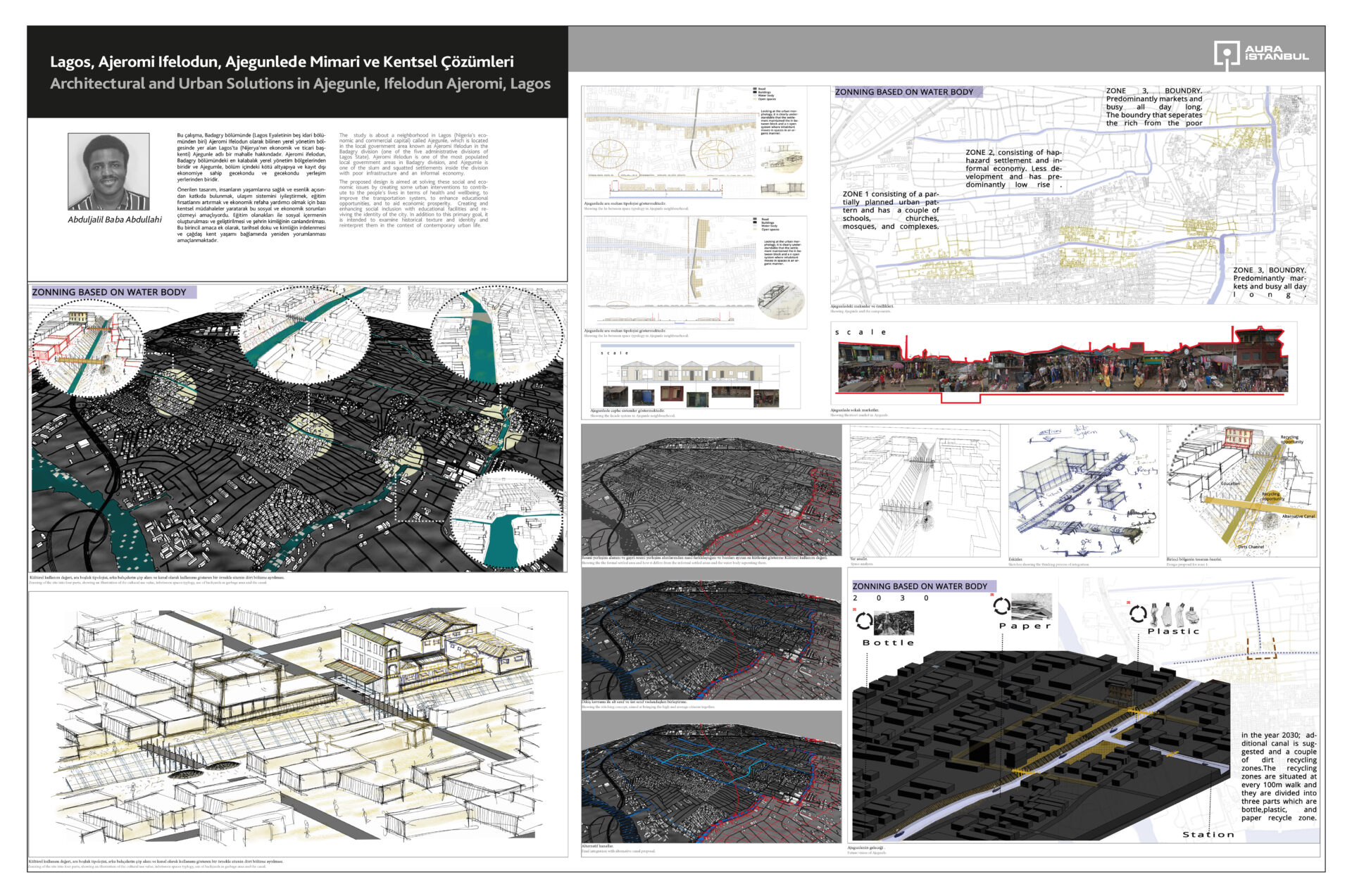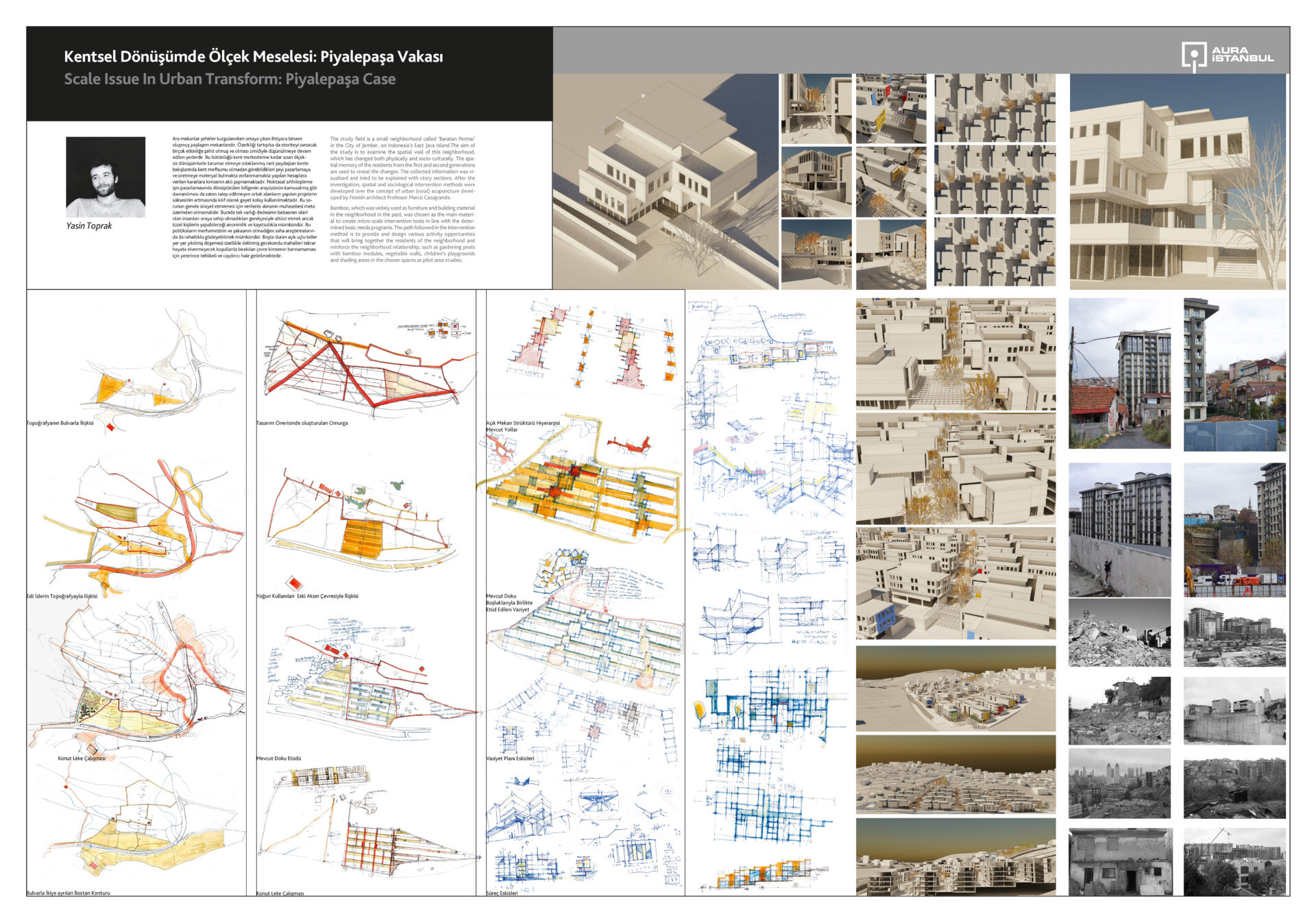 2022-2023 Güz Aura’sında bu senenin dünya mimarlık günü mottosu olan, “Esenlik için Mimarlık” başlığını seçtik. Bu büyük, kavrayıcı ve uzun zamandır unuttuğumuz önemli kelimenin altındaki özne tüm canlılar, yeryüzü parçaları, bitki örtüsü, hava ve su. On yedi projenin İstanbul’a, bir projenin Lagos’a bakışında mimarlığı başlıkta bırakıp, kentsel ölçeğe sıçramak kaçınılmazdı. Bu çalışmalarda seçilen alanların kentin merkezlerinde yer alması da bir tesadüf olamazdı. Son kalan kıyılar, vadiler ve yamaçlar üzerine binen mevcut ve yakın gelecekteki kentsel kurgunun ağırlığı ile nasıl başa çıkılacaktı?