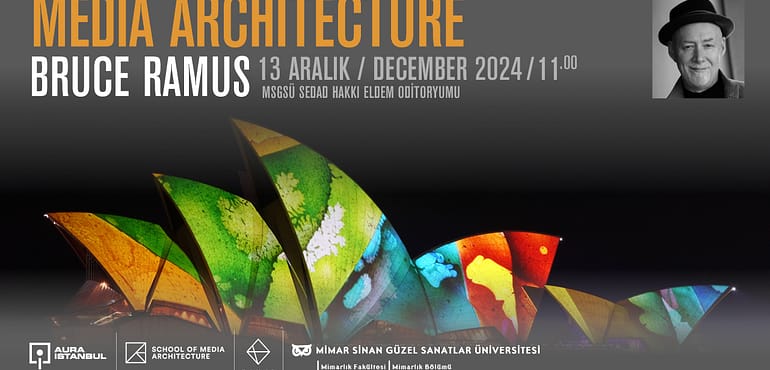 13 Aralık 2024, Cuma günü, ışık ve medya tasarımı alanında yenilikçi çalışmalarıyla tanınan dünyaca ünlü sanatçı Bruce Ramus’u, “Media Architecture” (Medya Mimarisi) başlıklı ilham verici bir konferansta ağırlıyoruz! Bu özel etkinlik, Mimar Sinan Güzel Sanatlar Üniversitesi’nin ev sahipliğinde, Sedad Hakkı Eldem Oditoryumu’nda gerçekleşecek.
