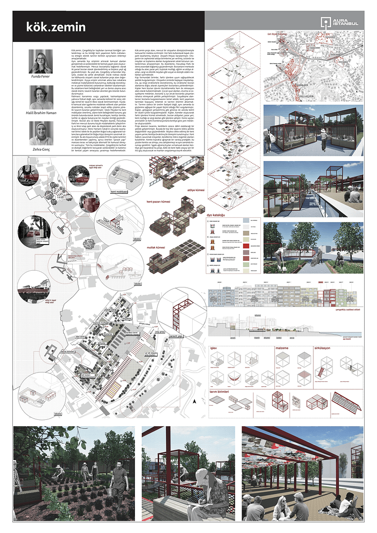 Kök.zemin projesi, Çengelköy’ün kaybolan tarımsal kimliğini canlandırarak, tarımın kent yaşamıyla bütünleşmesini sağlamayı amaçlamaktadır. Aynı zamanda kıyı erişimini artırarak kamusal alanları genişletmeyi hedeflemektedir. Mevcut bostanlarla bağlantılı olarak iki parsel bostan olarak işlevlendirilmiş ve yeşil ağ güçlendirilmiştir. Otopark alanı bir kamusal mekâna dönüştürülerek, bostanlar, pazar yeri, topluluk mutfağı, eğitim ve sergi alanları gibi sosyal ve ekolojik odaklı mekânlar oluşturulmuştur.