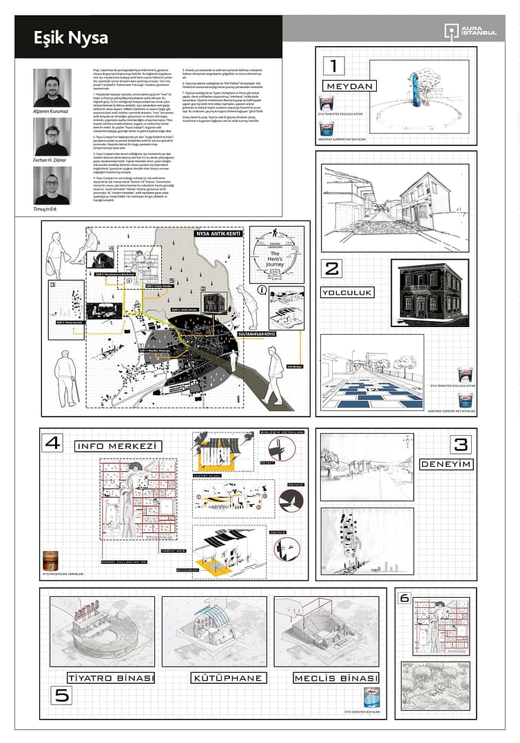 Bu dönem, AURA İstanbul tarafından DYO Boya’nın desteğiyle sekizincisi gerçekleştirilen AURA Crea “Tarihin Renkleri” Atölyeleri, “NYSA: Geçmişin Varlığı” temasıyla Nysa Antik Kenti’ni odağına aldı. NYSA Antik Kenti Kazı Başkanlığı’nın ev sahipliğinde yürütülen atölyede, mimar ve sanatçılardan oluşan katılımcılar antik kenti güncel bir bakışla yeniden yorumlayan fikir projeleri geliştirdi. Atölye kapsamında, Nysa’nın kültürel, arkeolojik ve mekânsal değerleri; topografya, katmanlılık ve malzeme ilişkileri üzerinden bütüncül bir yaklaşımla ele alındı. Miras alanına yönelik yaratıcı, duyarlı ve yere özgü tasarım ve sanatsal üretimlerin teşvik edilmesi atölyenin temel önceliklerinden biri oldu.