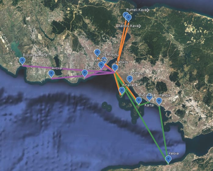 Anahtar Kelimeler: Istanbul, feribotlar, ulaşım altyapısı, su, teknoloji performansı, performans sanatı, yürüyüş sanatı, alana özgü sanat, kavramsal sanat, turizm karşıtı