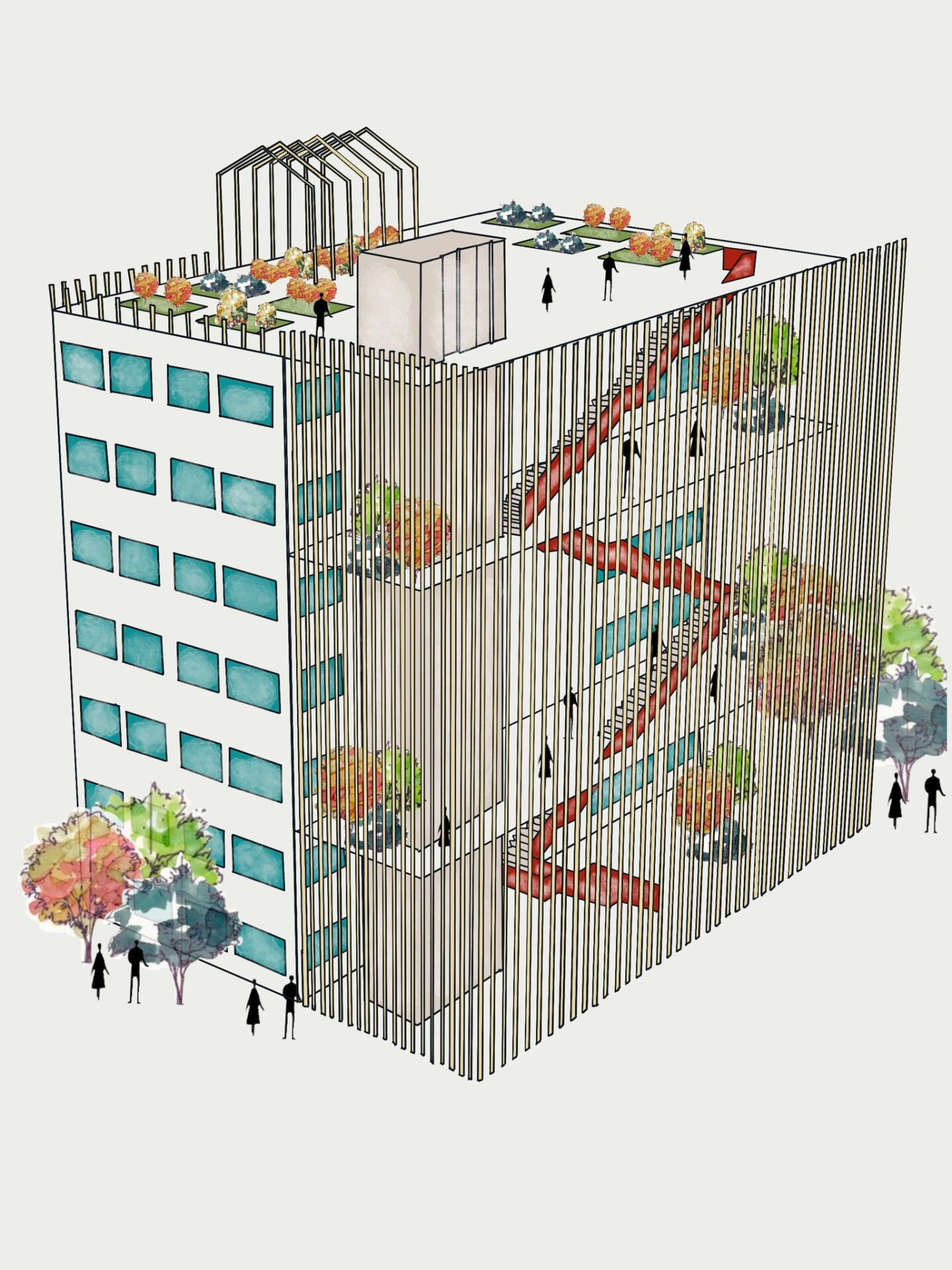 Fikirtepe: Bir Gecekondu Mahallesini Mikroiklim Adasına Dönüştürmek başlıklı bu proje, İstanbul’un hızlı kentsel dönüşüm geçiren mahallelerinden Fikirtepe’de, sosyal ve çevresel kayıplara karşı alternatif bir yaşam modeli geliştirmeyi amaçlamaktadır. Alan çalışmaları, mahalle sakinleriyle yapılan görüşmeler ve arşiv taramaları yoluyla, Fikirtepe’nin tarihsel, sosyo-kültürel ve ekolojik potansiyeli analiz edilmiştir. Proje, mahalle kültürünü korurken aynı zamanda mikroiklim adaptasyonu sağlayan, düşük katlı ve modüler bir konut prototipi sunar. Bu modelde geçirgen yüzeyler, bitkisel gölgeleme, çatı tarımı ve çok fonksiyonlu cepheler gibi sürdürülebilir çözümler kullanılarak hem termal konfor artırılmakta hem de sosyal etkileşim desteklenmektedir.
