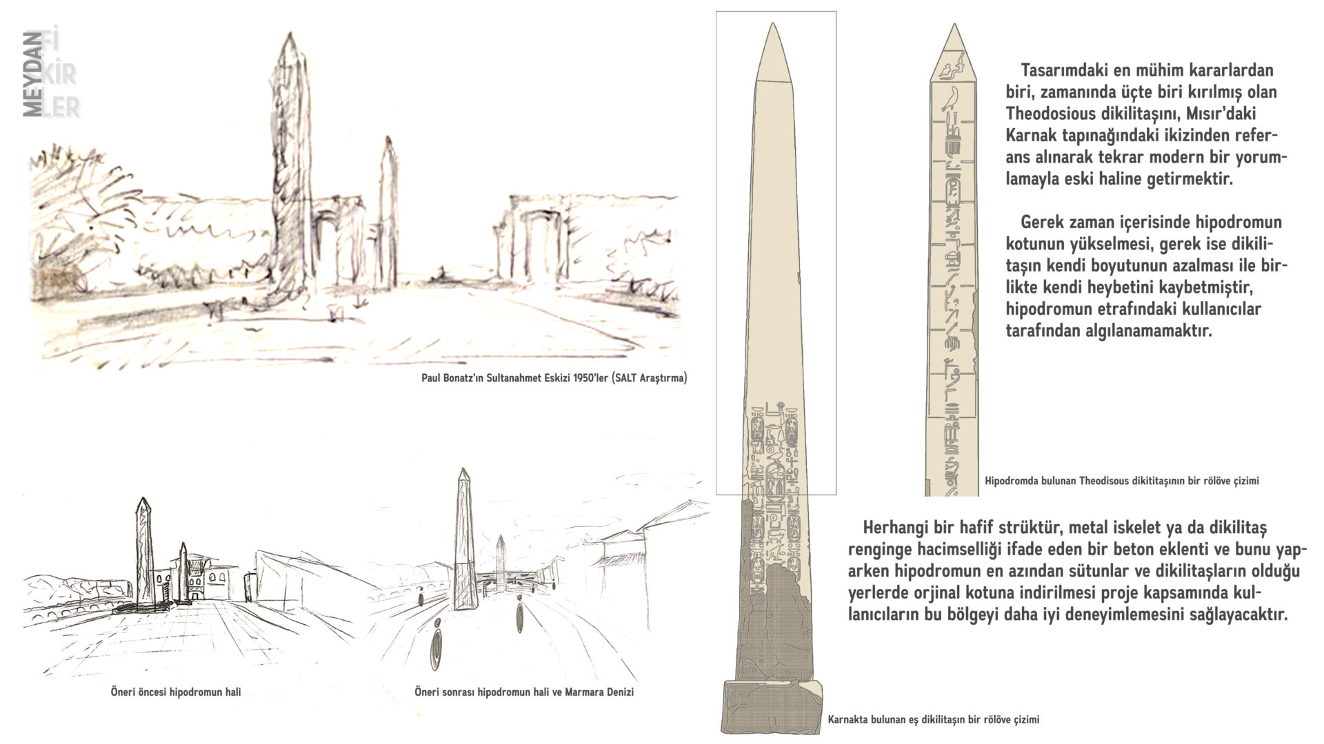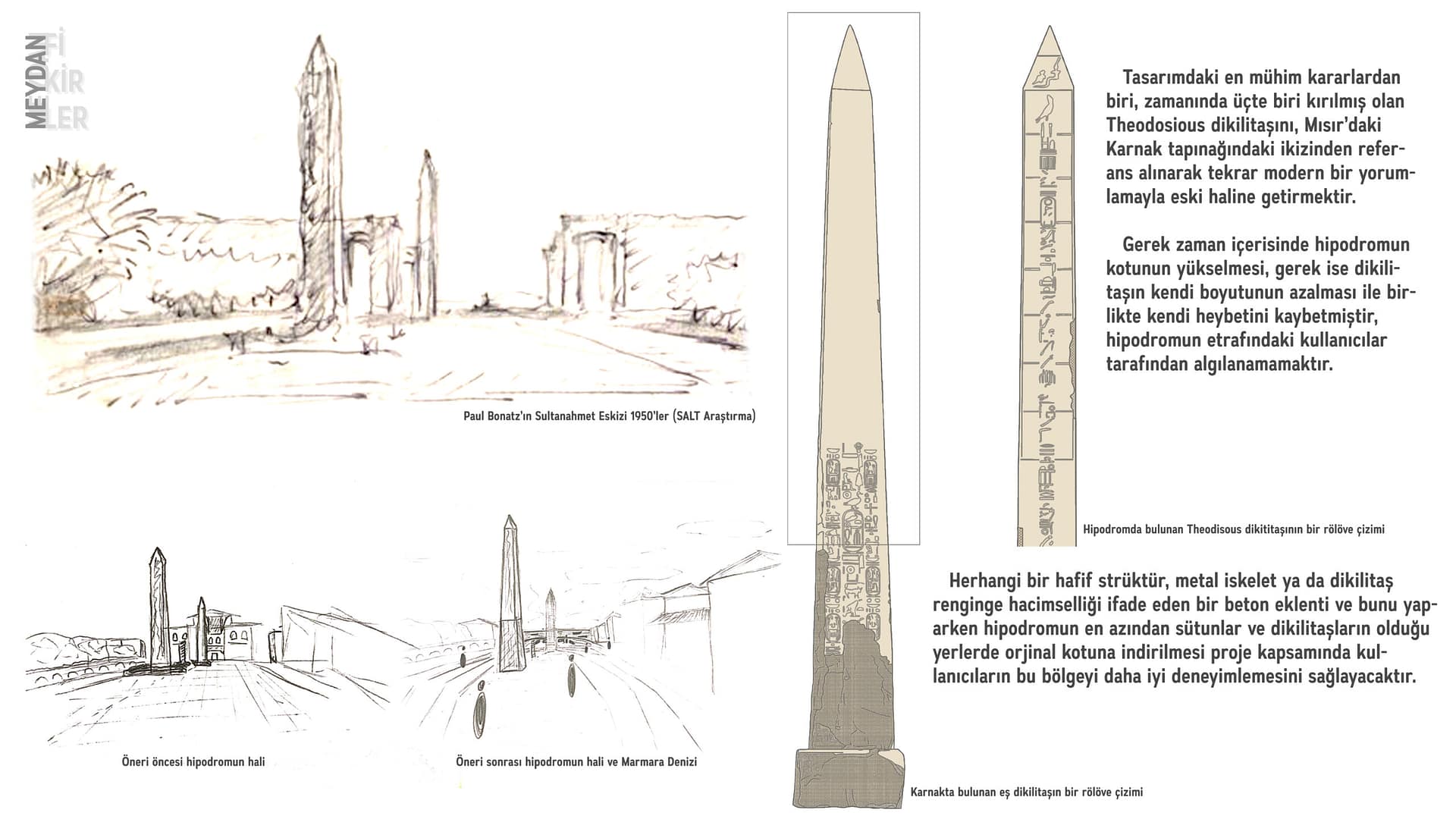 Günümüzde Sultanahmet Meydanı’nın bir parçası olarak çalışsa dahi aslında kendi içerisinde birçok potansiyel ve dinamiğe sahip bir yer. Hipodrom ‘un bir parçası olduğu Sultanahmet Meydanı’na bakılacak olursa ise aynı Hipodrom örneğinde olduğu gibi birden fazla bölge veya alan tarafından oluşturulmuş bir meydan olduğu görülecektir.