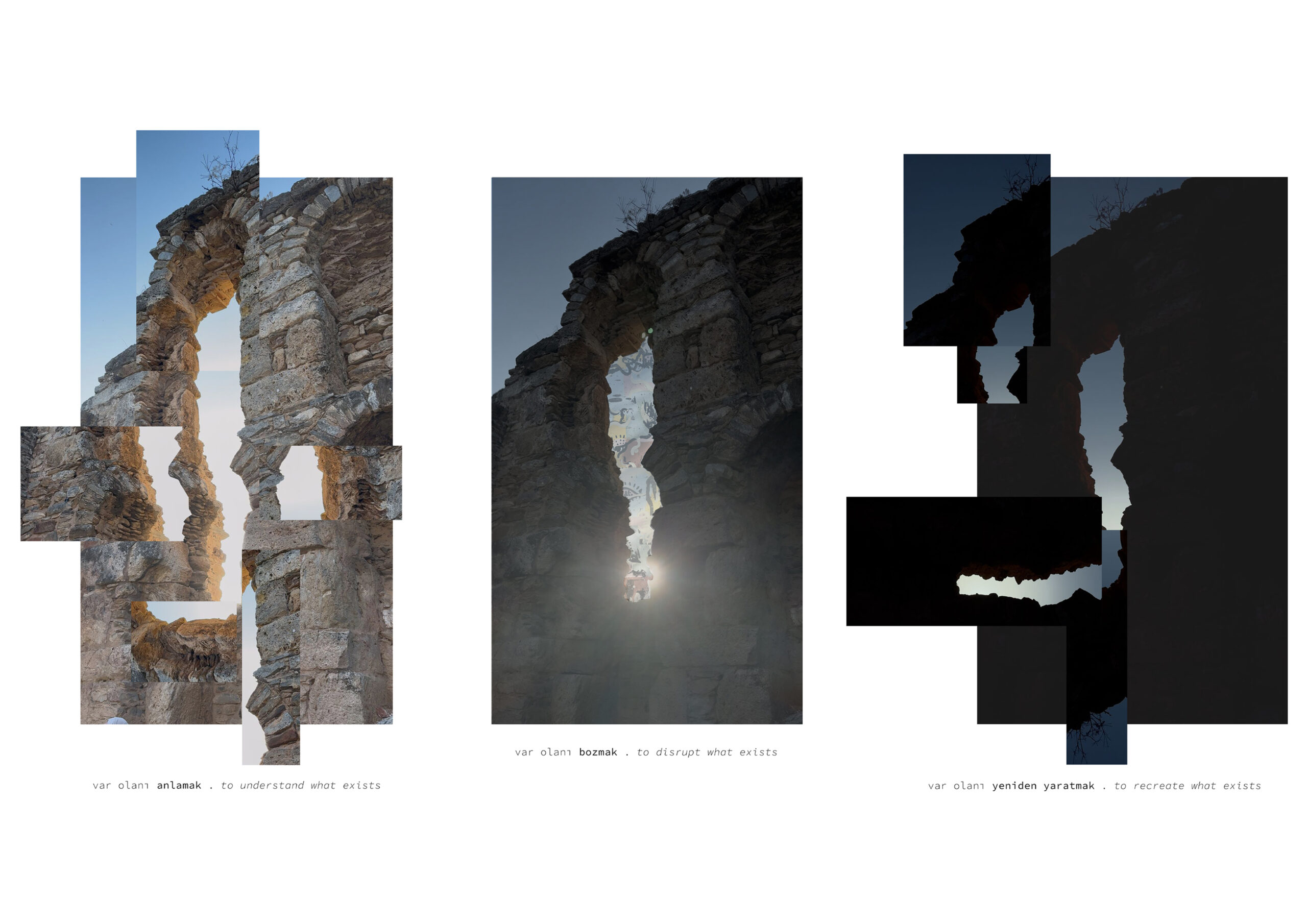Bitmemişlik, Nysa Kütüphanesi’ni tamamlanmış bir yapıdan çok, dönüşümün ve yeniden yaratımın mekânı olarak ele alır. Yarım bırakılmış açıklık, insanın kendini aşma hâlini; kırık yüzeyler ve katmanlar ise bu sürecin parçalı ve belirsiz doğasını görünür kılar. Güneş ışığı, bu dönüşümün her defasında yeniden kurulan bir eylem olduğunu hatırlatan geçici ama yönlendirici bir eşik olarak mekânda belirir.