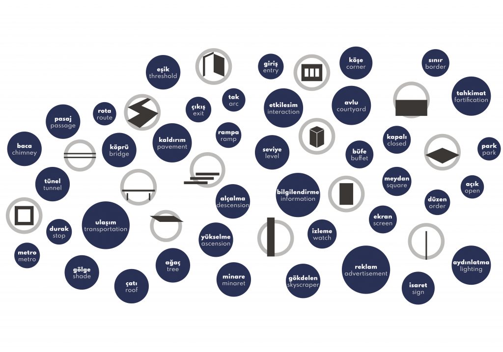 Bu çalışma, postmodernitede kentsel çevreyi, ögelerini, güç ilişkilerini, anlamları ve değerleri anlamak adına postmodern tarzda yapılmıştır. Ögeler, aralarında hiyerarşinin olmadığı rizomatik bir düzlemde haritalanmıştır. Merkezi olmayan, çok merkezli ve parçalı bir bakış açısıyla incelenmişlerdir. Anlam anda mevcut değildir, kelime çiftleri arasında diferansiyel ve gecikmeli olarak meydana gelirler. Daha sonra eleman çiftleri incelenir ve yapıbozumuna uğratılırlar.