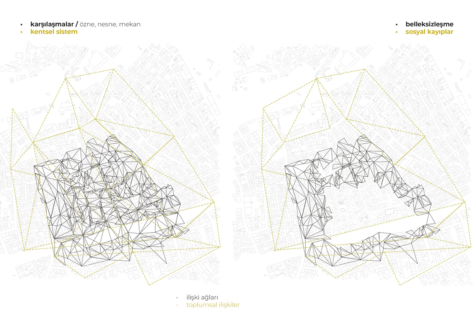 Anahtar Kelimeler: Kentleşme Süreci, Toplumsal Mekan, Biyo-iktidar, Kentsel Bellek, İlişki Ağları Yıkım İmgeleri