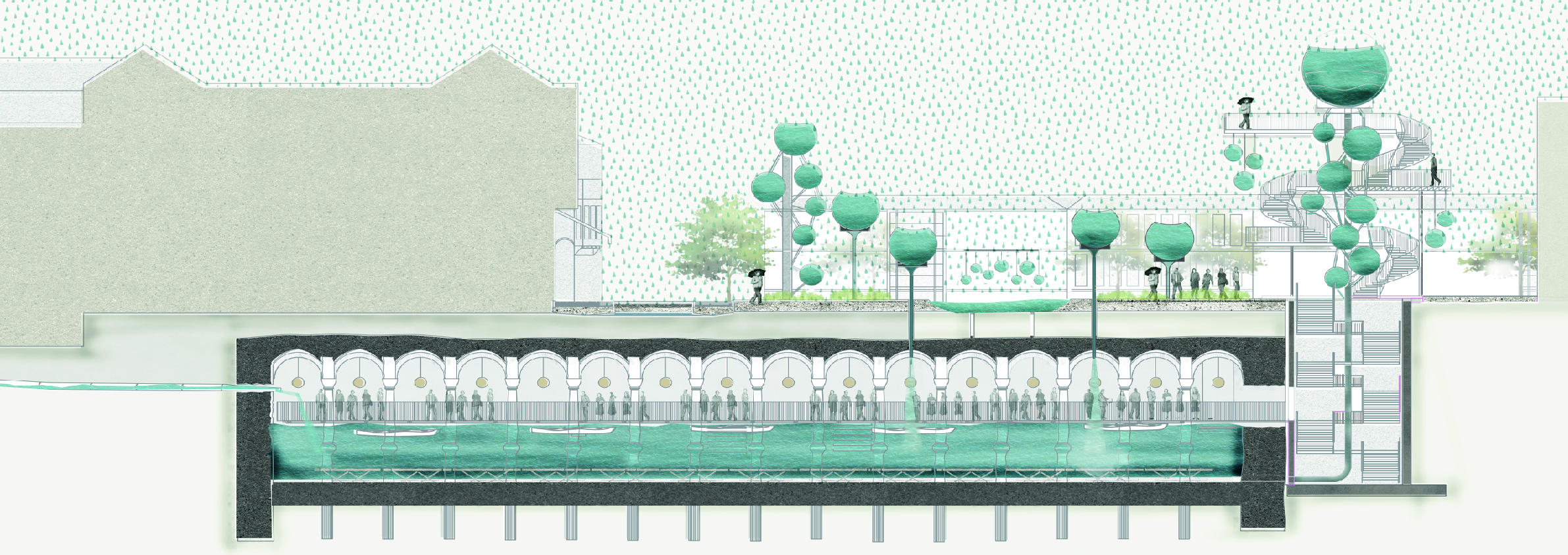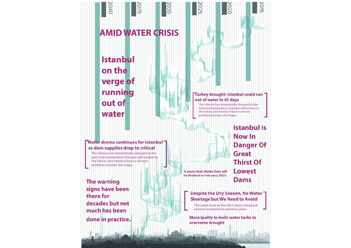 Bu çalışma temel olarak, İstanbul tarihi yarımadadaki Bizans Dönemi sarnıçları 21. yüzyılın su altyapı sisteminin bir parçası olarak yeniden kullanılabilir mi sorusuna cevap aramayı amaçlar. İstanbul’un üç yanı denizlerle çevrili olmasına rağmen geçmişten günümüze şehre suyu getirmek ve şehirde tutmak bir problemdir. Bizans döneminde şehirde inşa edilmiş olan sarnıçlar; günümüzde su kaynaklarının yetersizliğinin etkilerini gördüğümüz giderek artan su problemin çözümünün bir aşaması olabilir mi? Bu çerçevede kent ölçeğinden yapı ölçeğine yağmur suyu toplama stratejileri geliştirildi ve su ile ilişkisi kesilen kentlinin yaşamına su ögesini tekrar dahil etme kaygısı güdüldü. Tarihi sarnıçların bu sistemin nasıl bir parçası olabileceği üzerinde fikirler geliştirildi. Çalışma alanı olarak döneminin en büyük ikinci su deposu, Valens su yolunu son durağı olan Binbirdirek Sarnıcı seçilmiştir. Su ile ilişkisi kesilmiş olan bu yapılar, su toplama potansiyellerini kullanılarak topluma yeniden kazandırmak, su problemine dikkat çekmek ve farkındalık yaratmak için bir araç olarak kullanılmıştır.