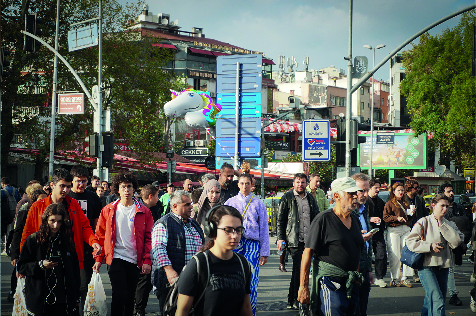 3- Sadece Sanatçı: Bu iş, hayattaki konumumu sorguladığım bir şiirin, kalabalık şehir içinde neşeli bir protestoya dönüşen fotoğraf-video serisidir. Rengârenk gündelik kıyafetler ve çocukluğu çağıran unicorn figürüyle, ne tam yetişkin ne çocuk olan bu arada hâli kamusal alanda görünür kılarak kalabalığın içinde kendi yerimi arıyorum.