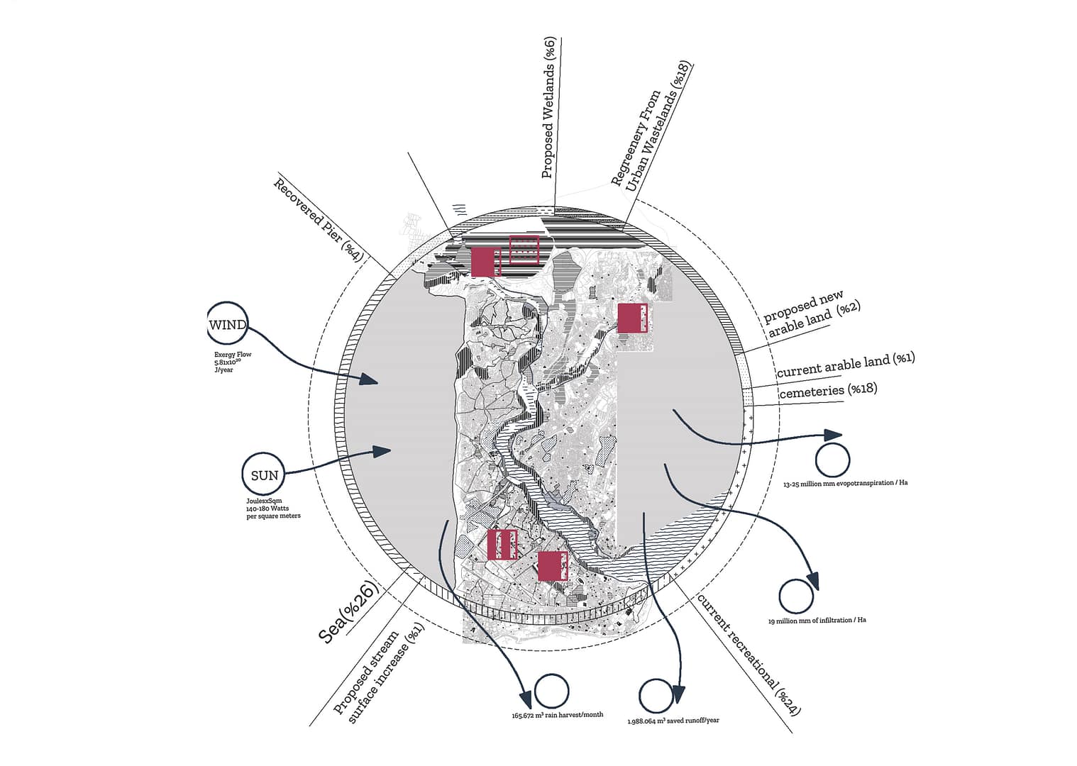 İstanbul’da, mikro ölçekte iklim krizine karşı alınabilecek önlemlerin doğal çevre ve yapay çevreyi simbiyotik bir bütünlükle organize edeceği altyapısal biraradalıkları üretecek aralıkların ve potansiyel ortak yaşam habitatlarının oluşturulması araştırmanın amacıdır. İstanbul’da doğal ve yapay sistemlerin tarih boyunca gerilimli ilişkiler oluşturduğu Haliç üzerinden kentin mavi, yeşil ve kentsel altyapılarının bir bütün halinde çalıştığı bir “yeniden süperorganizma” kurgusunu geliştirmek amaçlanmıştır. İklim krizine karşı dirençli ve esnek altyapı kurgusu bütüncül bir ekolojik restorasyonla ele alınmıştır. Potansiyel simbiyotik yaşam alanları üzerinden genel stratejiler oluşturulmuştur.