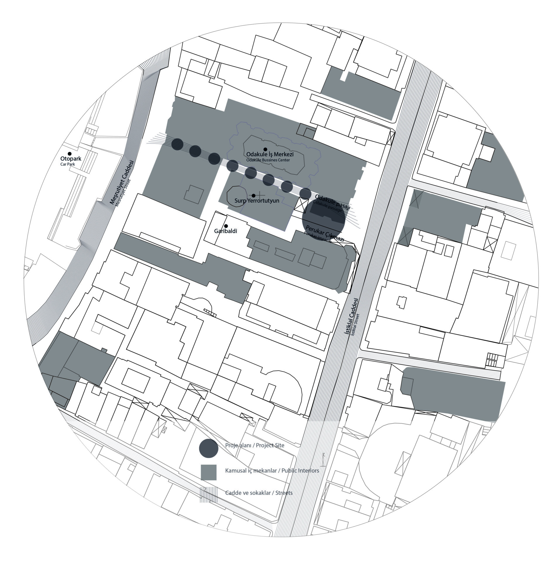 Tüm bu araştırma sürecinin yansıması, tasarımcı olarak Perukâr Çıkmazı ve Odakule Pasajı üzerinde deneyimlenmeye çalışılmıştır. Alana eklemlenebilecek elemanlar ile yeni bir mekân organizasyonu kurmak amaçlanmıştır. Çalışma, mevcut kütle ve objelerin yeniden konumlandırılması ve yeni perspektifler oluşturulmaya çalışılmasıyla sonlandırılmıştır.