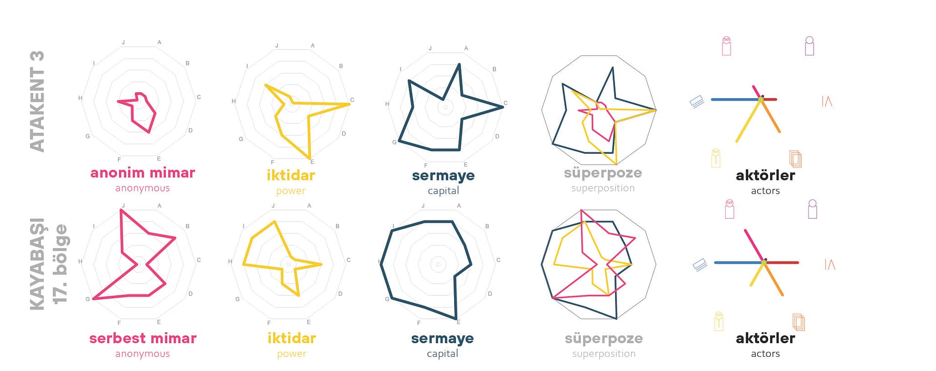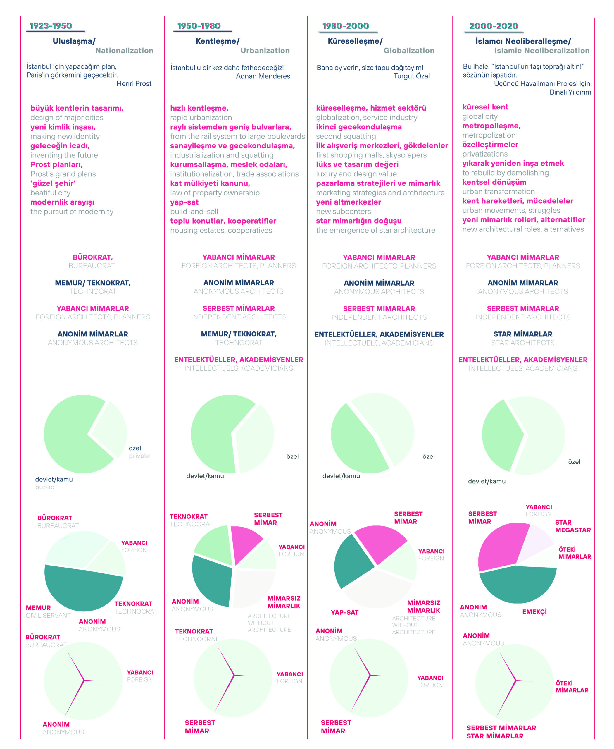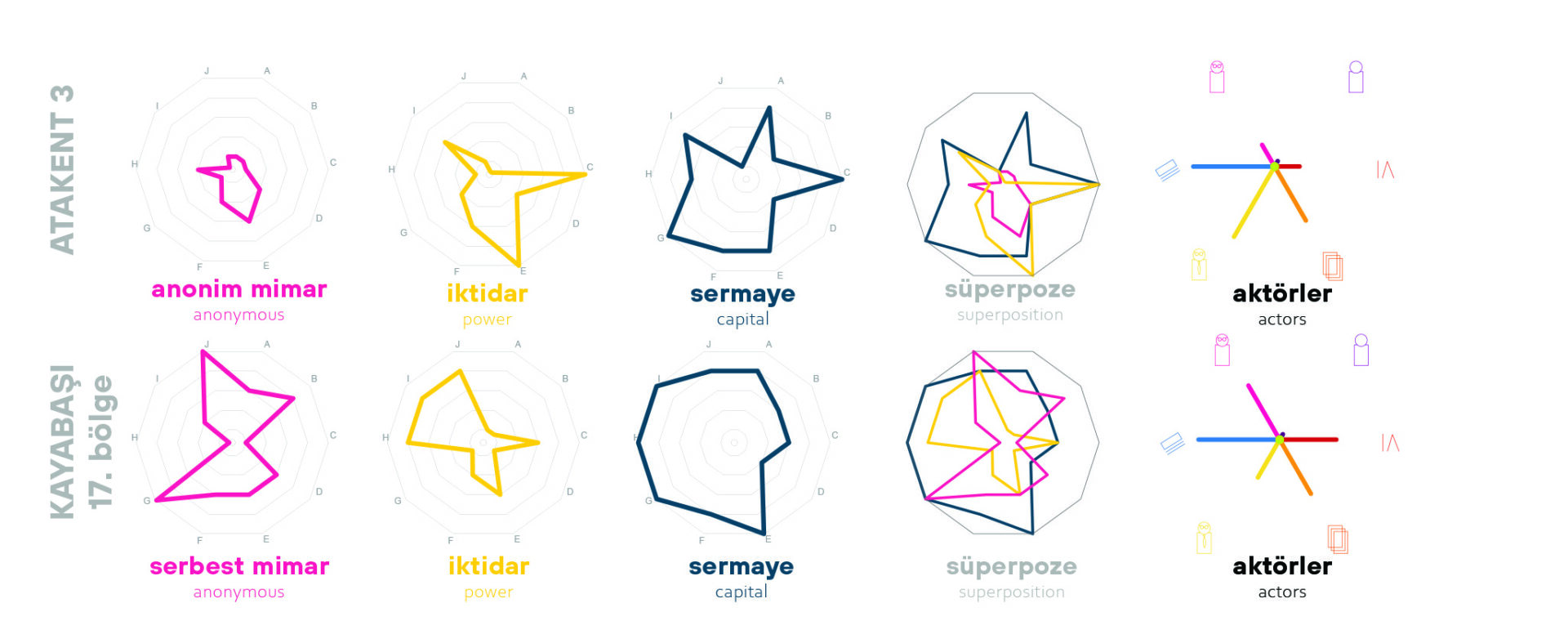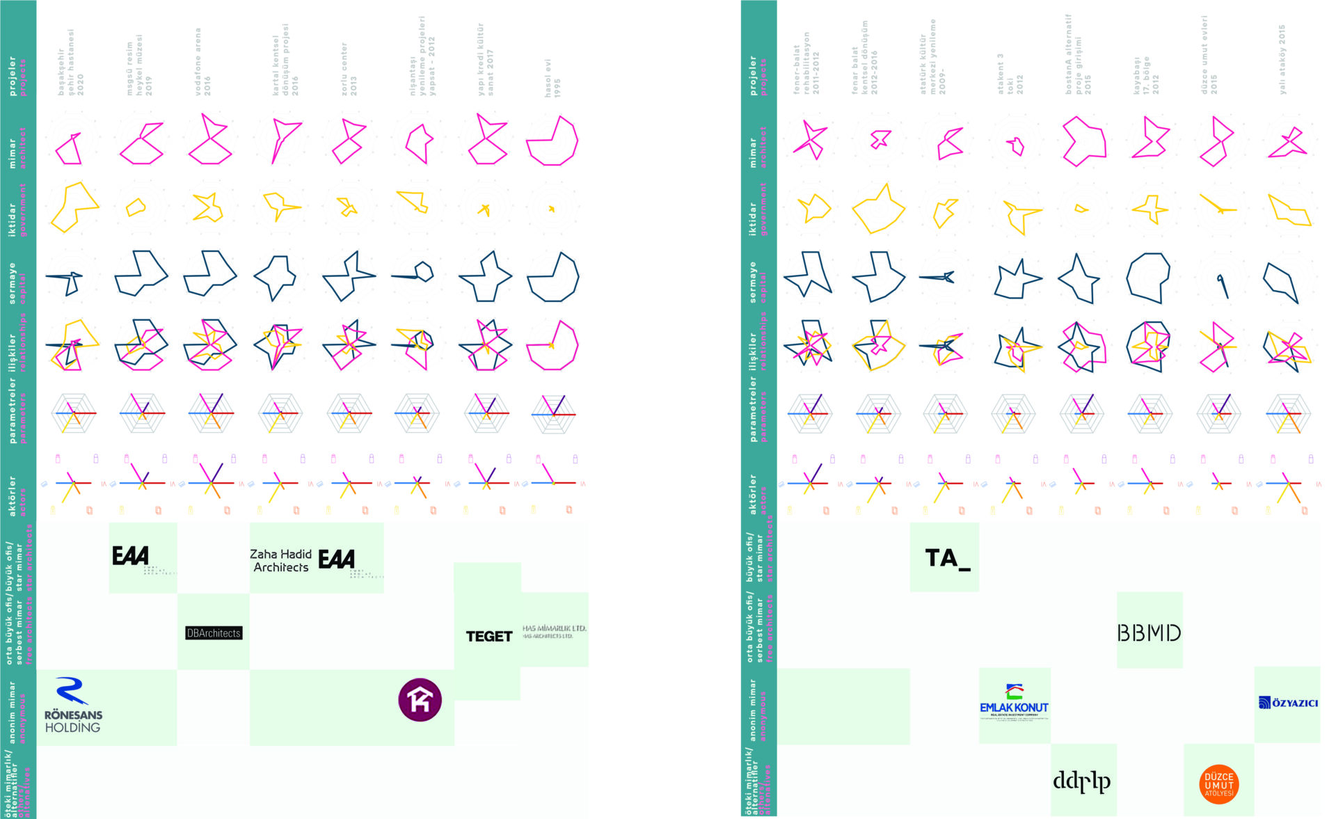 Metropolleşmenin yaşandığı son yirmi senede gerçekleşen, farklı sermaye grupları ve farklı mimar rollerini barındıran üç projeye detaylı olarak yer verildi. Mimarların etkinlik alanları çok uçlu grafiklerle ifade edilirken, şu sorulara cevap arandı: