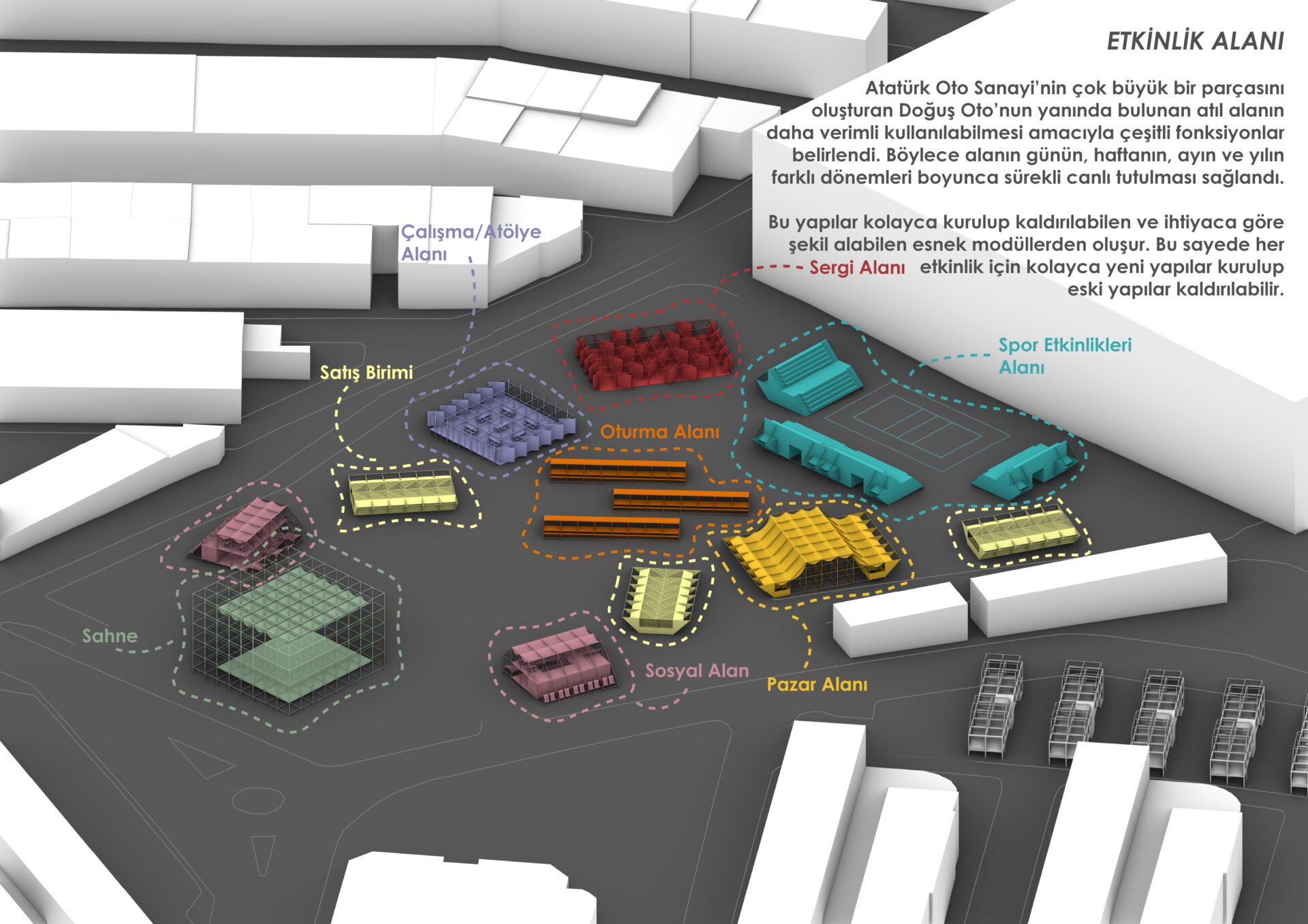 Bu çalışma, İstanbul’un Maslak bölgesinde yer alan Atatürk Oto Sanayi Sitesi’nin mevcut mekânsal yapısı, sosyal dinamikleri ve kentsel dönüşüm süreçleri karşısındaki potansiyelini ele alarak alana yönelik tasarım temelli mekânsal öneriler geliştirmeyi amaçlamaktadır. Proje sürecinde alanın tarihsel gelişimi, kullanıcı profili ve mevcut işlevsel çeşitliliği dikkate alınmış; üretim, sosyalleşme, kültürel ve sanatsal faaliyetler, kolektiflik ve doğayla iç içe olabilme odaklı mekânsal stratejiler oluşturulmuştur.
