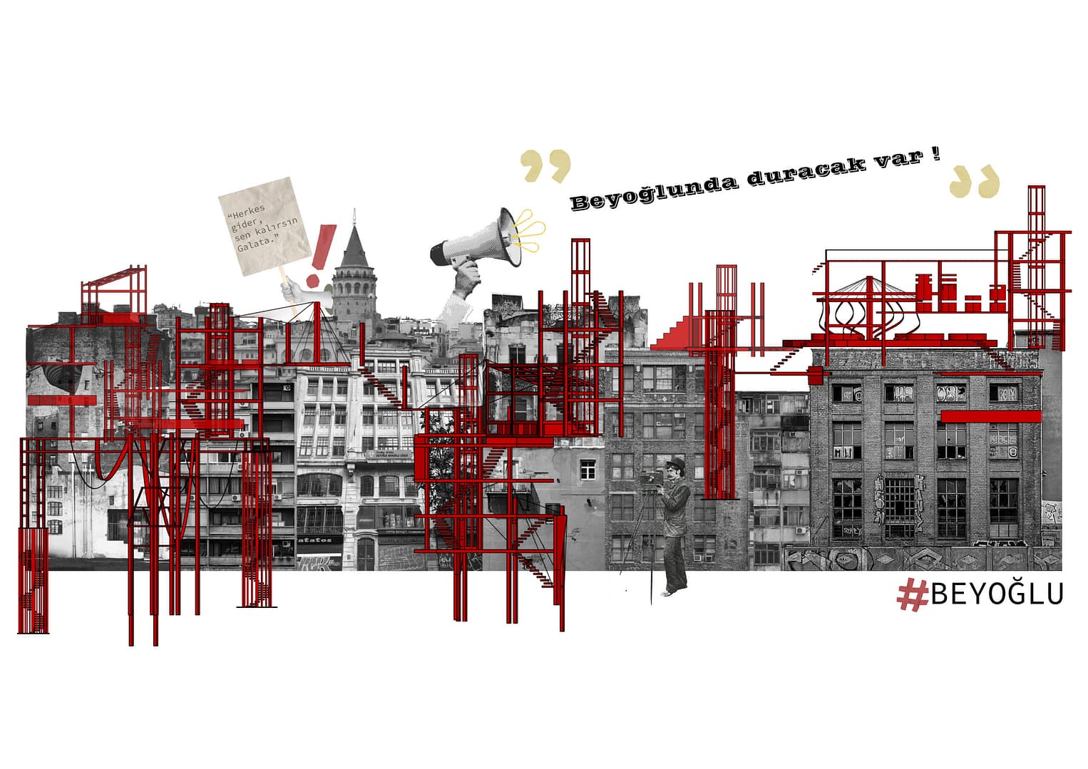 Beyoğlu’nun çok katmanlı, çok kültürlü yapısı yangın merdivenlerine özgün anlamlar kazandırır. Bu merdivenler, yapılar arası geçiş sağlayan dikey bağlantılar, sessiz boşluklar ve bireyler için kaçış alanları olarak işlev görebilir.