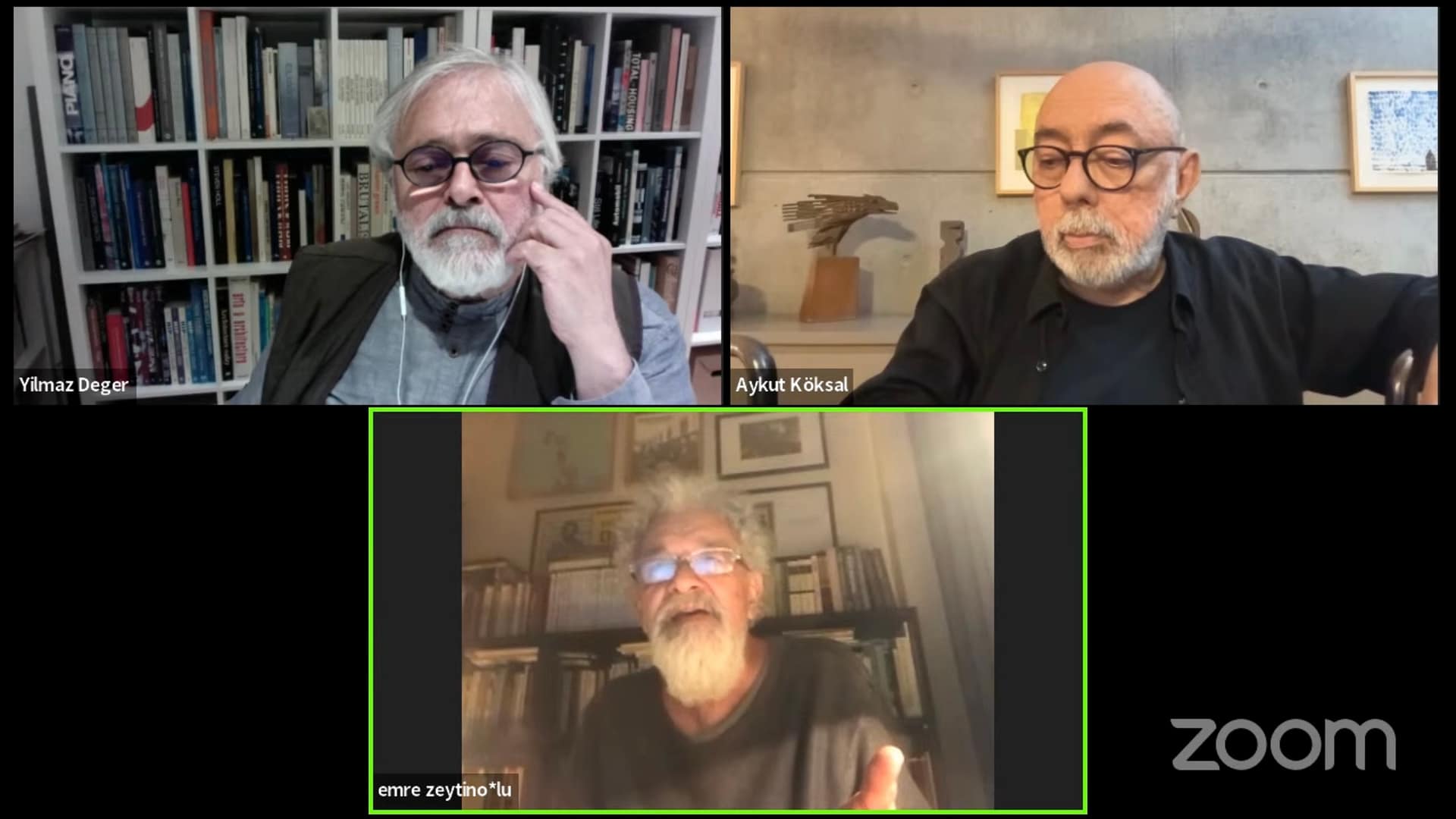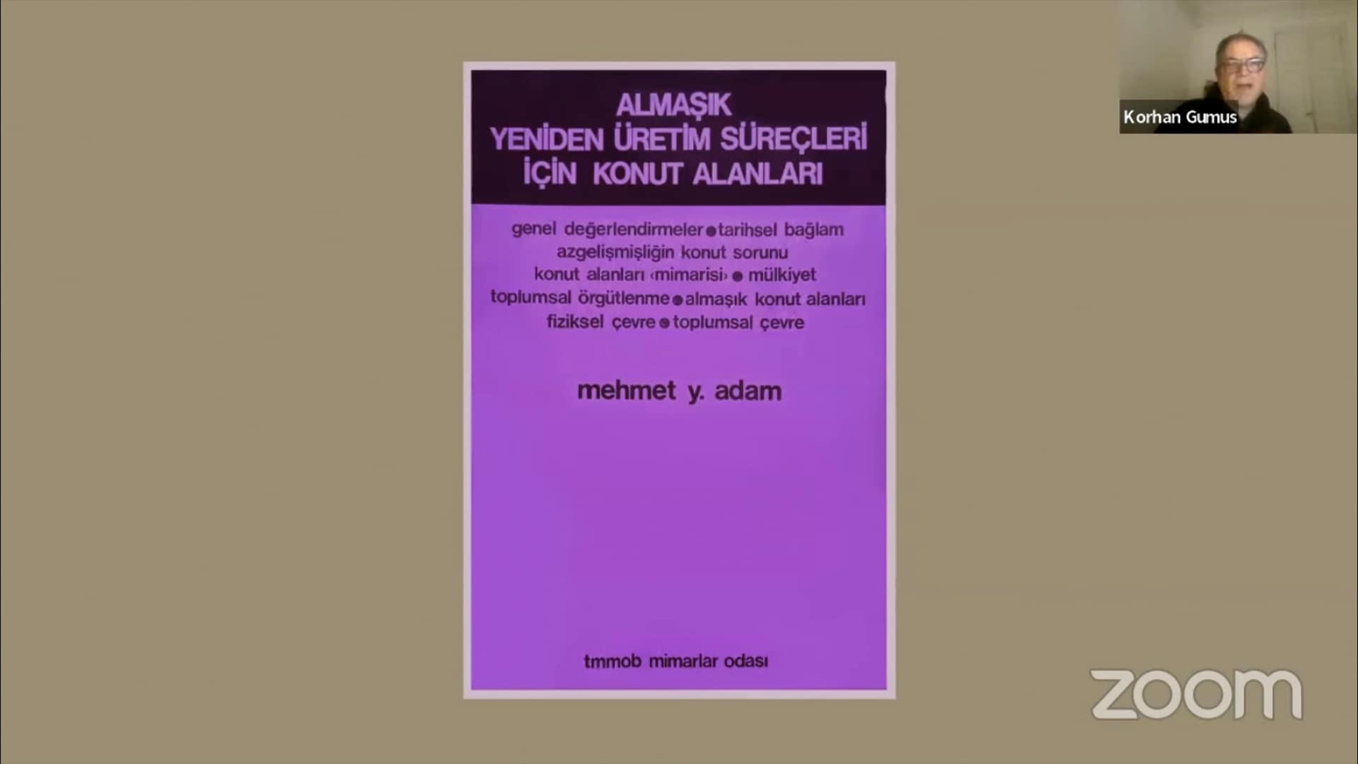 Etkinliğe, Aykut Köksal ve Yılmaz Değer konuşmacı olarak, Pelin Derviş konuk olarak katıldı. İlk sırada, Yeni İnsan Yayınevi’nden çıkan, “Mekan ve Yer” başlıklı kitap ele alındı. Etkinliğe kitabın editörlerinden Gülşen Özaydın konuk oldu. İkinci olarak, Ricordo Porro’nun kaleme aldığı Arketon Yayınları’ndan çıkan “Mimarlıkta İçeriğin Beş Görünümü” kitabı ve yayın süreci paylaşıldı. Kitabın çevirmeni Orhun Alkan etkinliğe konuk olarak katılarak Porro’nun hayatı ve projeleri hakkında bilgi verdi. Son olarak 1974 yılında Yapı Kredi Yayınları tarafından yayımlanan Sedad Hakkı Eldem’in “Türk Mimari Eserleri” kitabı yorumlandı.