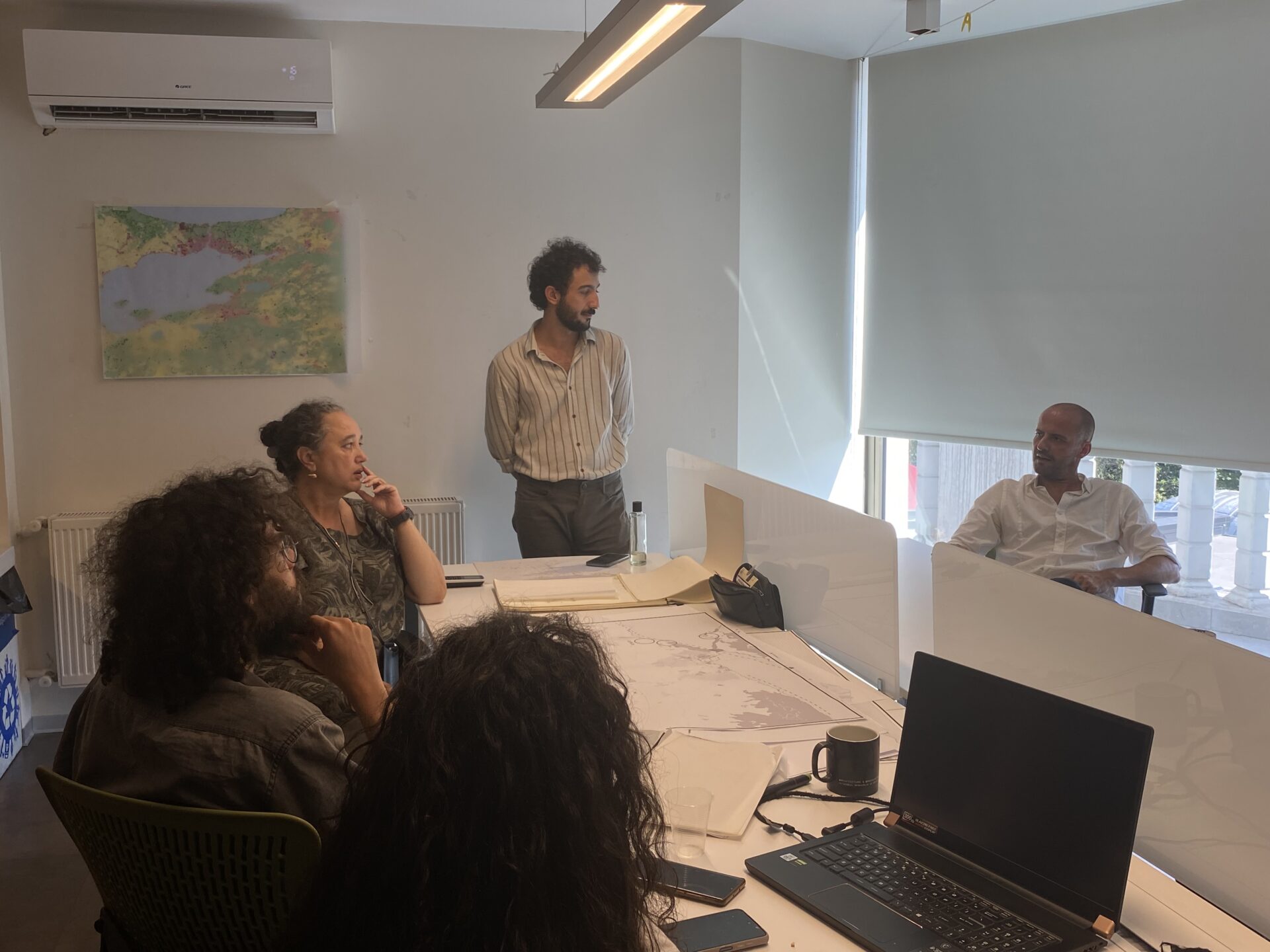 AURA İstanbul’un Marmara Bölgesi’ndeki araştırma çalıştayı için araştırmacılara Eda Yücesoy, Tansel Korkmaz ve Sinan Logie eşlik etmiştir. 10 araştırmacıdan oluşan ekip, deniz havzasını çevreleyen ekolojik koridorlar boyunca insan faaliyetleri ve doğal kaynaklar arasındaki stres noktalarını belgelemek için saha araştırmaları gerçekleştirmiştir. Saha araştırmaları İzmit -Sapanca, Yalova ve Bandırma olmak üzere üç odak bölgede yapılmıştır. Araştırmanın amacı, kritik iklim krizi ve kapitalist çağımızda kırsal ve kentsel kalkınmanın yeni potansiyel stratejilerini tanımlamaktır. Stüdyo, son yıllarda bu konularda çalışan birçok akademisyenin katkılarıyla zenginleşmiştir.