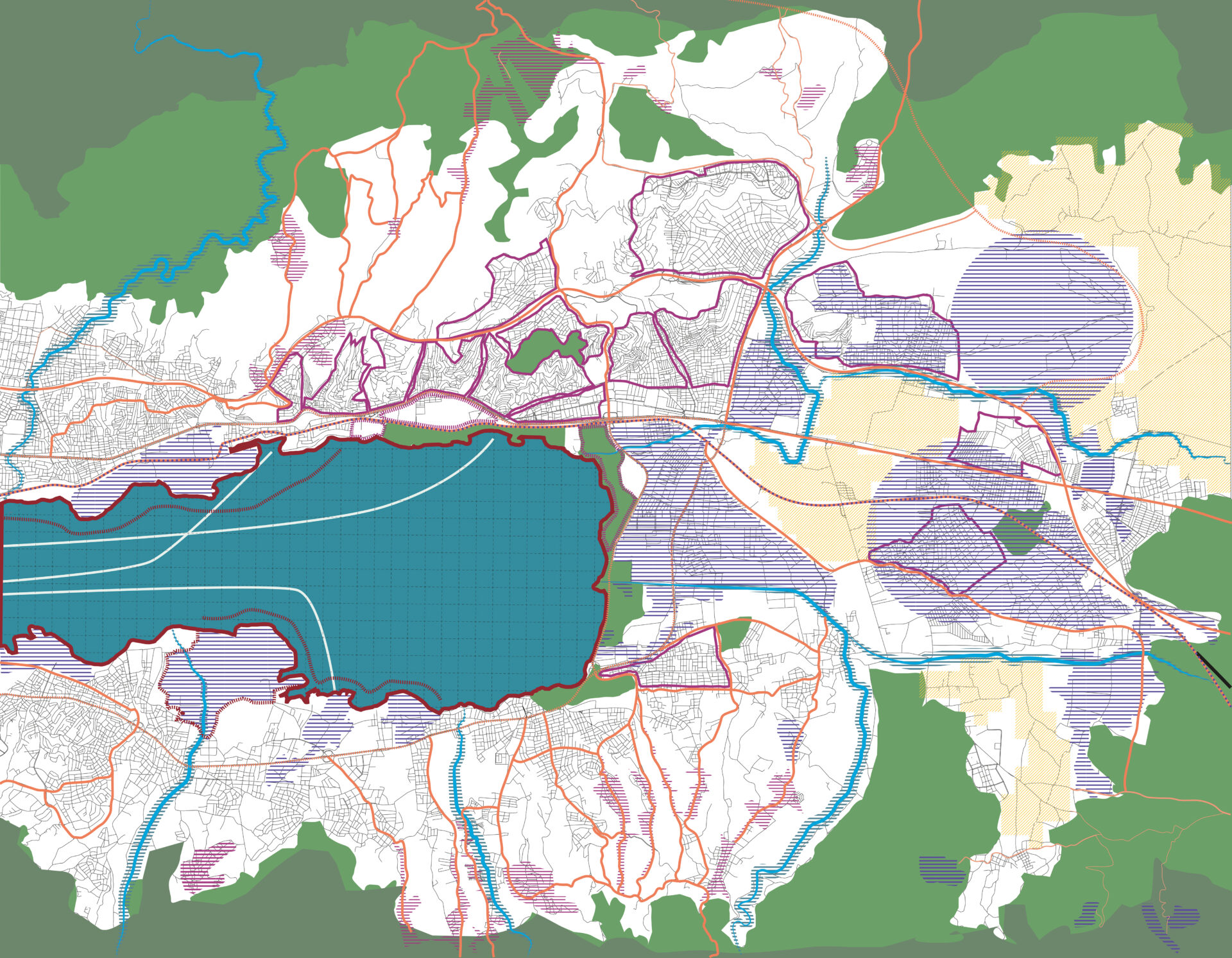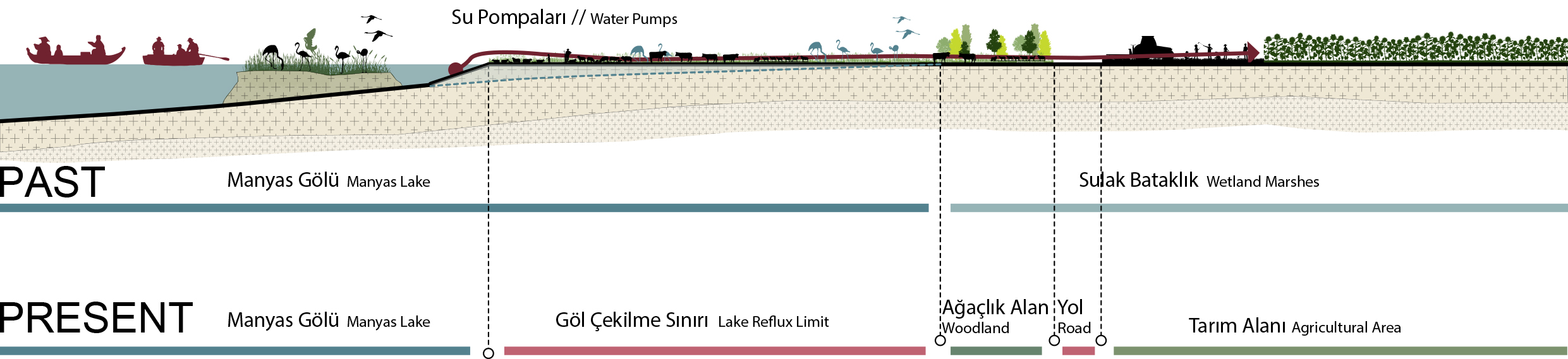Bölgedeki gözlemler sonucunda, gölün çevresinde çok sayıda kirletici etken bulunmaktadır. Kuzeyinden geçen D-100, güneyini çevreleyen TEM ile demiryolunun kirliliği yağış sularıyla göle ağır metaller, gres- yağ taşınmaktadır. Çevredeki tarım alanlarından gelen tarım kimyasalları, direkt kıyı ile ilişki kuran turizm tesisleri ve işletmeler diğer muhtemel kirletici unsurlardır. Gölden su kullanan kurumların ve aldıkları suyun miktarının belirsiz olması planlama yapmayı zorlaştırmaktadır. 2 Çalışma kapsamında saha gezisine gitmeden önce; ulaşım ağları, ekolojik, tarihi, coğrafi, jeolojik veriler gibi başlıklarda bilgiler toplanmış, Corine temelli haritalar yardımıyla üst ölçekten bakılarak alan hakkında bir ön bilgi edinilmiştir.