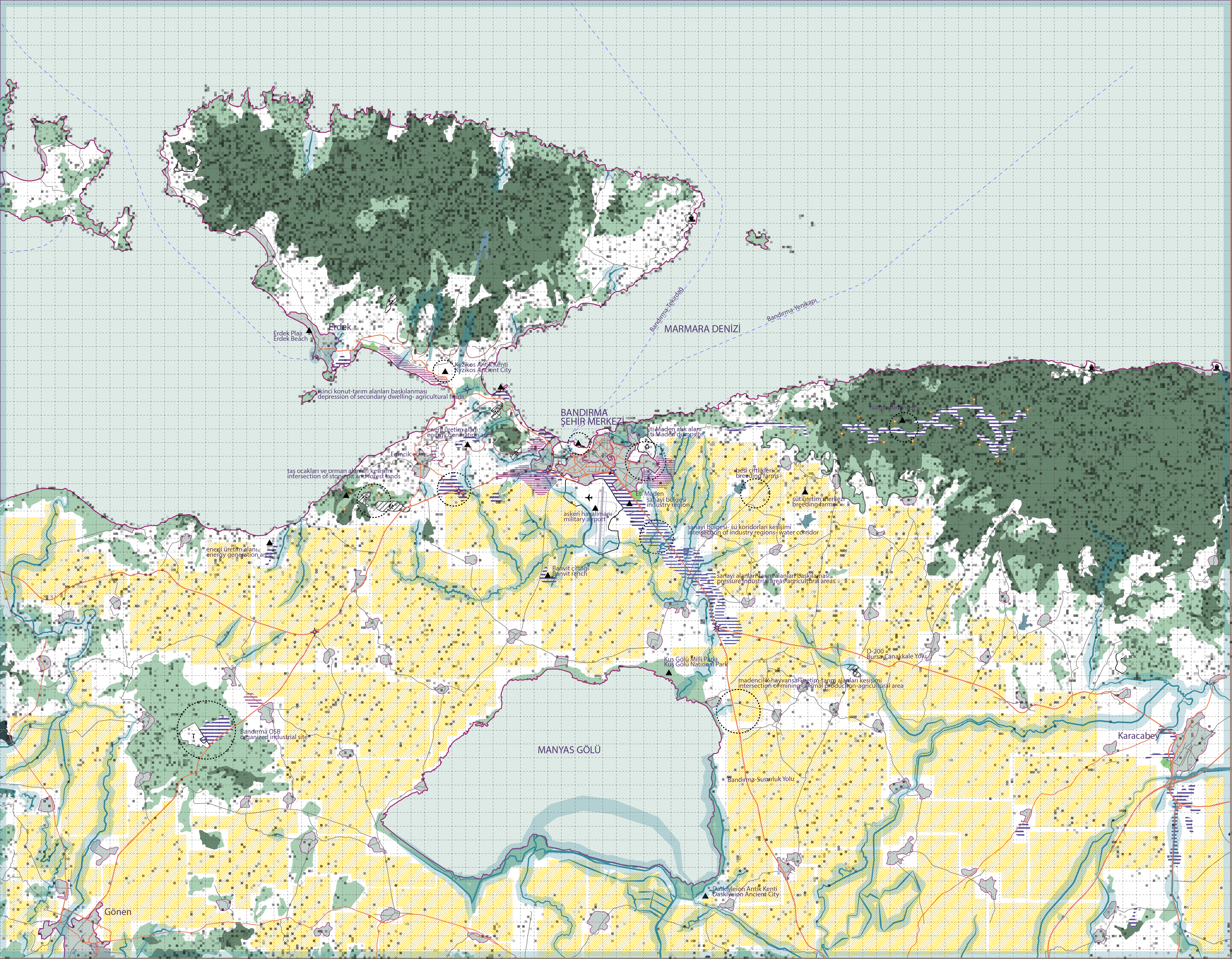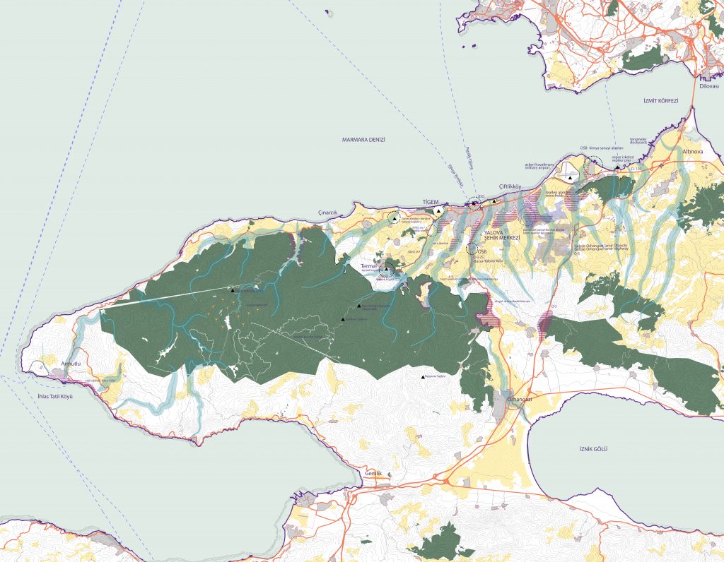 Makro-bölgesel ölçekte Marmara bölgesini okumak, yapısı hakkında bize bazı ipuçları verir. Ekonomik bir merkez olarak İstanbul, Kocaeli’den Bursa’ya uzanan çok yoğun bir sanayi bölgesi, Çanakkale Yarımadası’nın kuzeyindeki madencilik ve enerji üretimi ve Gelibolu’dan Trakya Yarımadasına kadar sanayi merkezleriyle karışık tarım, bu döngüsel ve sürekli kentsel bölgenin faaliyetlerini tanımlamaktadır.