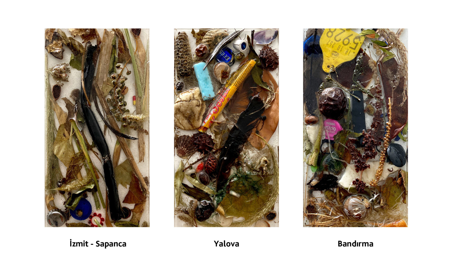 Bu çalışmada yürüyüş sırasında alandan malzemeler topladık. Epoksileri incelediğimiz zaman hangi yürüyüş rotasında suya ulaşıp ulaşamadığımızı, sanayi atıklarını, yapılaşmanın devam edip etmediği, bölgenin bitki çeşitliliği, atıl durumu gibi bir çok faktörü görebiliyoruz. Örneğin suya ulaşabildiğimiz alanlarda deniz kabukları görürken, sanayinin yoğun olduğu yerlerde sanayi atıklarına, işçilerin sigara izmaritlerine, tershanenin olduğu yerlerde atık demir çelik vb. malzemelere, tarımın yoğun olduğu yerlerde daha çok bitki çeşitliliğine, yeni yapılaşmaların devam ettiği noktalarda inşaat malzemelerine rastladık.